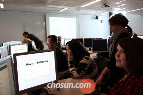 - ▲ 옴니아 직업학교 학생들은 웹디자인 전문업체들과 똑같은 작업 환경에서, 프로 웹디자이너들과 똑같은 소프트웨어를 사용해서 실습한다. 옴니아 직업학교는“이렇게 가르쳐야 졸업 후 바로 직업 세계에 뛰어들 수 있다”고 했다. /오현석 기자 socia@chosun.com