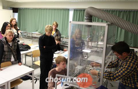 헬싱키 인근 카사부오렌중학교. 학교 허락을 받아 취재 간 기자가 2층 과학교실에 들어서니 학생들이 교실 앞쪽에 모여 있었다. 칠판 앞에 서 있는 과학교사 안시 라우하(Anssi Lauha)씨 손에는 실험용 전극(電極)이 들려 있었다. 염화구리 수용액을 분해하는 실험이었다.