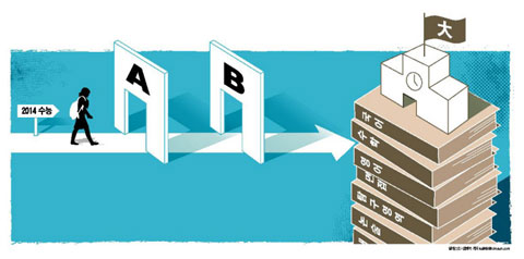 2014학년도 수능시험 개편방안이 지난달 발표됐다. 개편안에 따르면 수능시험을 11월에 보름 간격으로 2회 치르고, 언어·수리·외국어를 국어·수학·영어로 바꿔 쉬운 A형과 현재수준인 B형으로 나눠 실시한다. 탐구영역도 현행 최대 4과목 응시에서 1과목만 선택하는 것으로 바꿨다. 입시전문가들은 “자신의 진로를 세워 목표를 명확히 정하고, 학교 내신 준비를 철저히 하는 것이 가장 좋은 대비법”이라고 입을 모았다.◆학교 교육에 더욱 충실하라