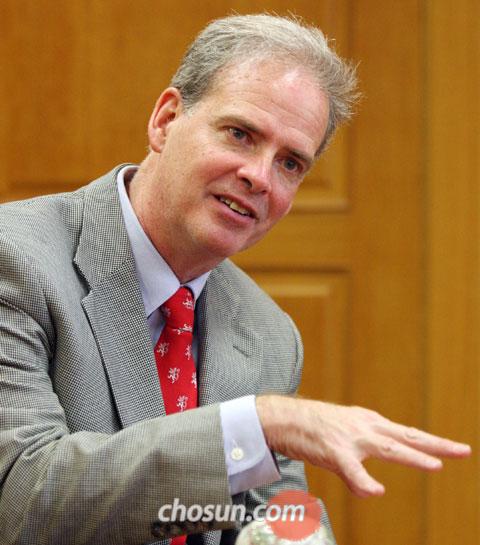- ▲ 미 명문 사립고인 필립스 엑시터의 토머스 하산 교장이 학교 교육정책에 대해 설명하고 있다.