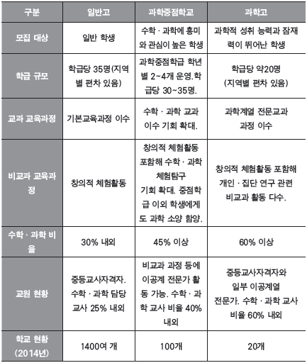<일반고·과학중점학교·과학고의