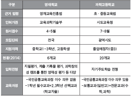 <과학영재학교와 과학고등학교의