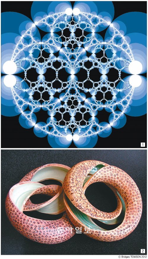 서클을 연상케 하는 이 작품은 미국 롱아일랜드대 수학과 앤 번스 교수가 ‘아폴로니안 개스킷’이라는 도형을 주제로 한 그래픽아트다. 아폴로니안