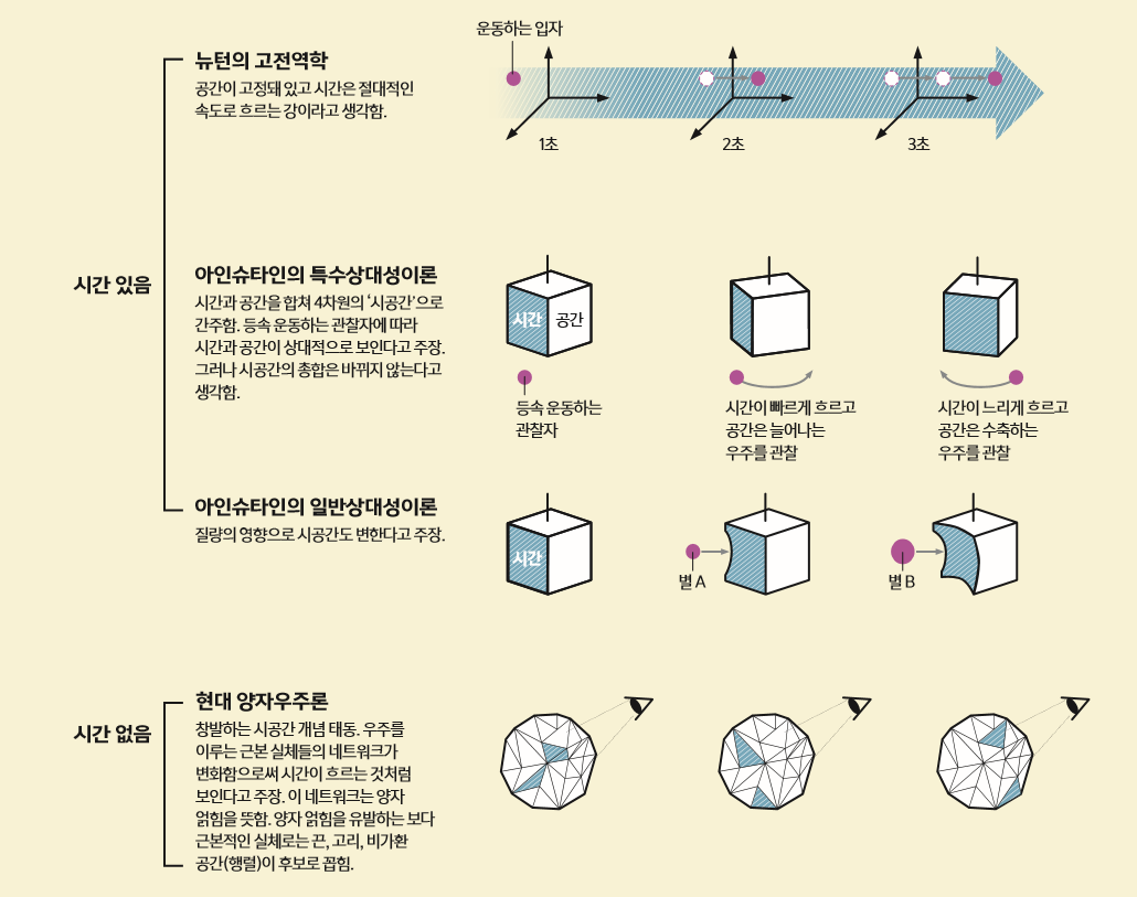 오랫동안 흐르는 강과 같은 존재였다. 물리학의 지평을 새로 쓴 아이작 뉴턴도 시간과 공간은 절대 변하지 않는 무대와 같다고 생각했다. 더 정확히