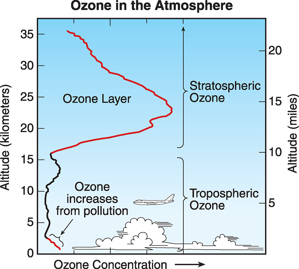 분자에 의한 광화학 반응의 최적 환경이 오존층 정도의 고도라고 불 수 있다. 그리고 대기의 대류현상도 영향을 미쳐 계절과 지역에 따라 오존층의
