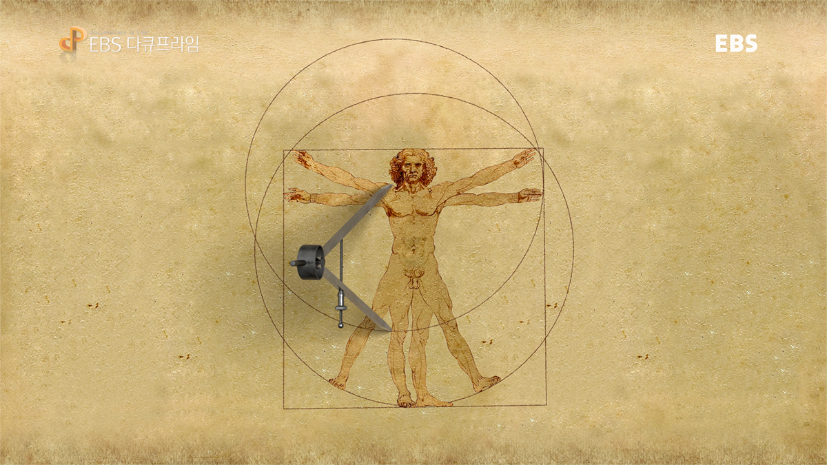 것이 하나의 도전이었습니다. 레오나르도는 [건축 십서]3권에서 그 실마리를 발견합니다. 비트루비우스가 제시한 이상적 인간은 그의 실험 정신 덕에